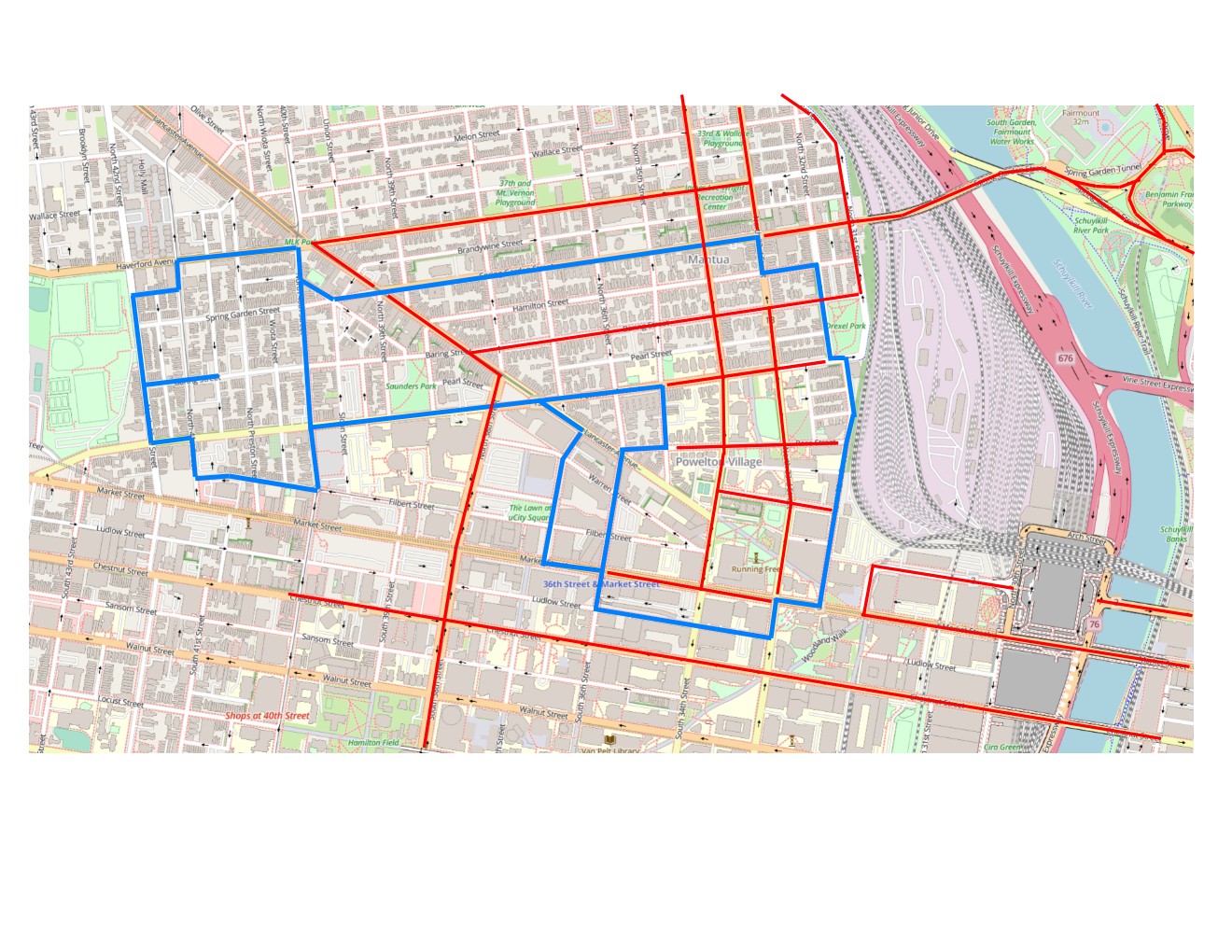 The university announced that regular shuttle service has been suspended due to construction on Market Street, Chestnut Street, 31st Street, 33rd Street, 34th Street, 38th Street, John F. Kennedy Boulevard, Arch Street, Powelton Avenue, Race Street, Broad Street, Baring Street, Hamilton Street, Spring Garden Street, and the Vine Street Expressway.